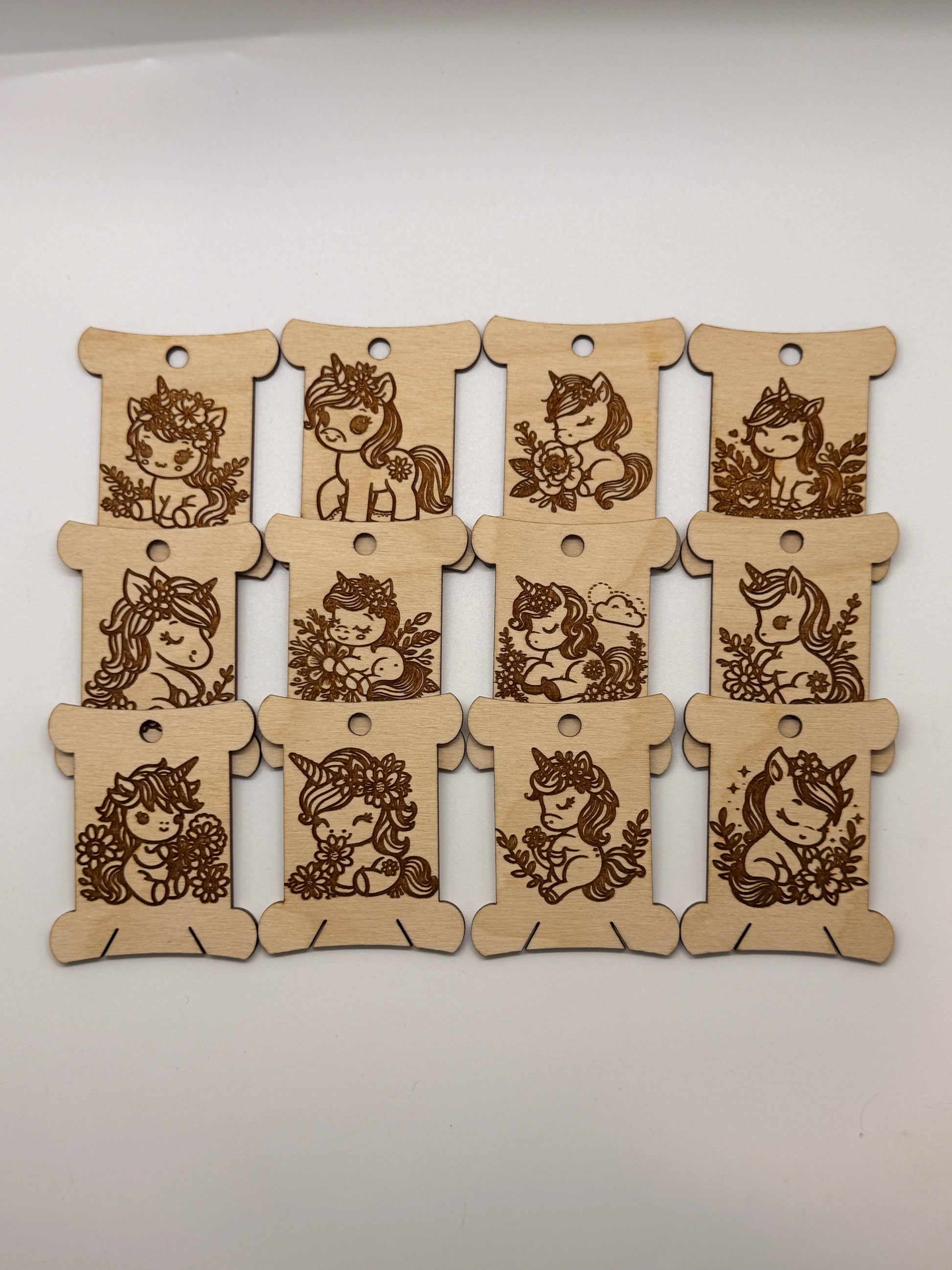 Unicorn Wooden Bobbins Set of 12 Embroidery Floss Organizer Cute Magical Cross Stitch Crafter Gift